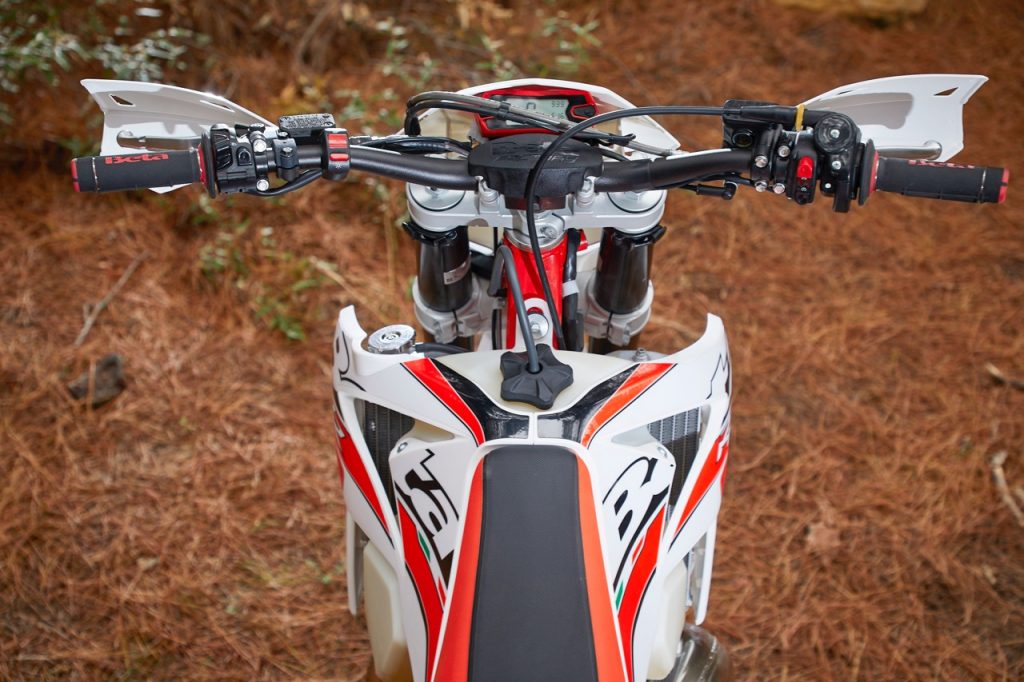 Some manufacturers accommodate my 195cm of supple lankiness better than others and while the Beta doesn’t have the seat height of a KTM or Husqvarna (960mm) I didn’t feel cramped. It comes down to the ’bar-to-’peg-to-seat dimensions and, despite losing 30mm to the Kato and Husky in seat height, the Beta doesn’t feel small.