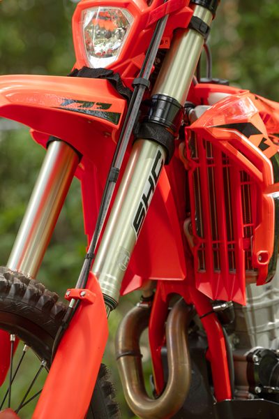 That contrast, the lively, light-feeling 350 versus the torquey, ultra-tractable 390, is what makes this comparison so compelling. They share the same DNA, the same chassis improvements, the same SHC fork and revised ZF shock, and even the same Xtrig FlexFix handlebar mounts to dull vibrations on long days. Yet their personalities on the trail couldn’t be further apart. And for riders trying to choose between them, the question becomes less about displacement and more about how you want to ride. Here’s how the two X-PRO mid-capacities really stack up.