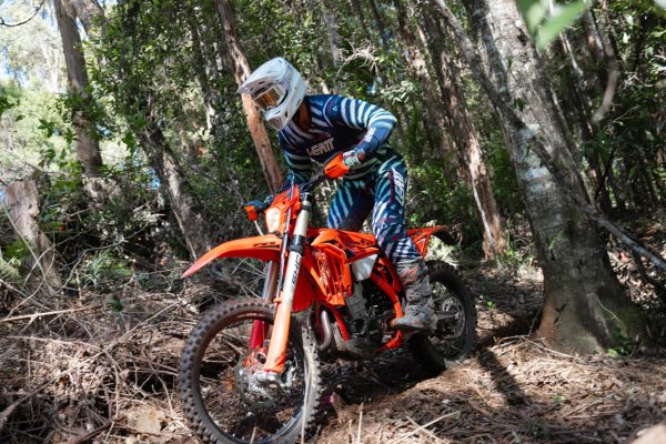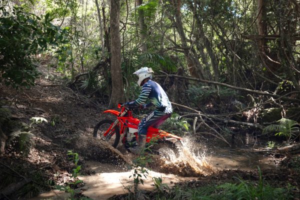 Jump across to the 390 and suddenly you’re on what feels like a luggy, doughy 450, similar in attitude to the Beta 430. It’s all about bottom-end torque and tall gears. You can lug it, crawl up hills, and get huge traction with very little clutch work. The Pirellis we had on for our test were like glue, and the 390 took full advantage. The power is strong, smooth and torquey all the way to the top, nothing spiky, nothing frantic. Honestly, it reminds me most of the old KTM 400 EXC: incredibly usable torque that never feels overwhelming. For trail riding, high-country loops, mellow singletrack or long days in the saddle, the 390 is an absolute weapon. It’s still great in tight singletrack, but it definitely sits in that “all-day trailbike” category. I can see why you don’t see many of them raced, E2 rules aside, you’d probably be quicker on a 350 between the trees, while a 450 will overpower it in outright racing.
