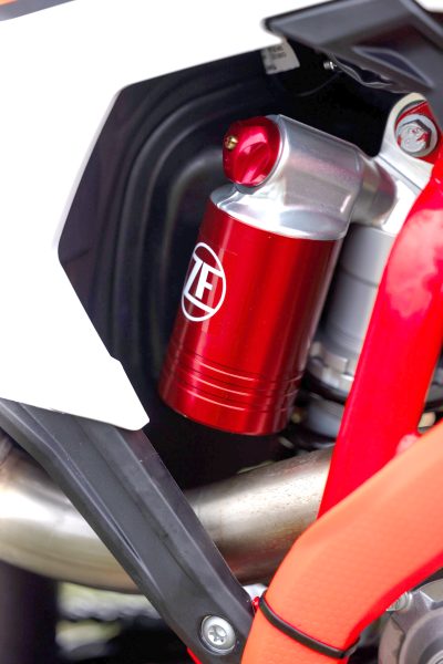 Moving along to the four-strokes I headed out on the 350 first. The 350 is an easy bike to ride with a super linear power delivery that inspires confidence. The engine doesn’t rev super-fast but it does ensure that power gets to the ground with great effect. The traction that the Beta four-strokes deliver is impressive and it’s rare to get out of shape under acceleration. The ZF suspension on the 350 is firmer than on the two-strokes and the bike seems to sit higher in the stroke. I reckon this suspension could work well in the bigger two-stroke bikes.
