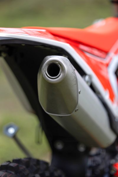 Next was the RR 390 and this was my pick of the four-strokes for the day. It has a little more grunt and liveliness that the 350 and, as a result, it feels poppy and responsive out on the track. I think if you threw a motocross exhaust system on it, it would really free up the engine.