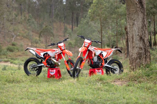 Just as I finished riding the eight 2025 Beta X-Pro bikes, I was reminded that there were two more special bikes to ride. The Beta Australia guys had specially air freighted two of the new Race models in so I had the chance to give them hell. A RR Race 2T 300 and a RR Race 4T 350. Honestly, as tired as I was, I was stoked to ride these bikes. They are the same platform as the X-Pro bikes, but they are littered with bling parts and trick bits and, more excitingly, KYB suspension front and rear. These bikes mean business.