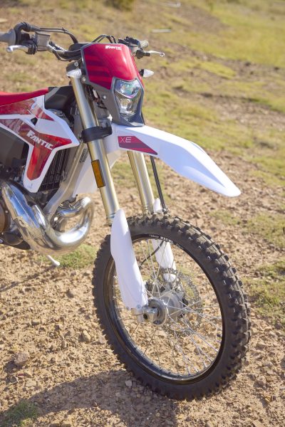 That said, the XE 300 isn’t flawless. It vibrates more than any other 300cc two-stroke we’ve tested (likely because it lacks a counter-balancer). Over rough terrain, it becomes noticeable, particularly through the grips and pegs. And in tighter, technical terrain where you crawl, power off the throttle is down, the lack of low-end throttle punch and the 5-speed limitation make you feel its design constraints. The brakes are solid and reliable, but in ultra-slow sections you miss the extra spread pf gears a sixth gear might offer.