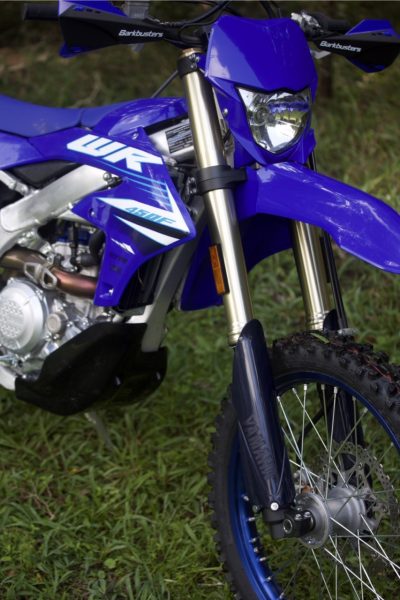 Gone are the days of feeling like you were riding a two-wheeled water tank. Yamaha has slimmed down the WR, giving it a new lease on life. It’s narrower through the midsection, meaning you can scoot your knees around the tank and seat without feeling like you’re wrestling a python. Even the plastics got a makeover, and now they’re svelte enough to make any old WR owner jealous. The exhaust has gone from a chunky ADR-approved cannon to something resembling the YZ pipe, meaning it looks good and doesn’t sound like a sad trombone.
