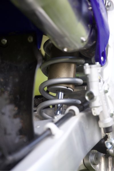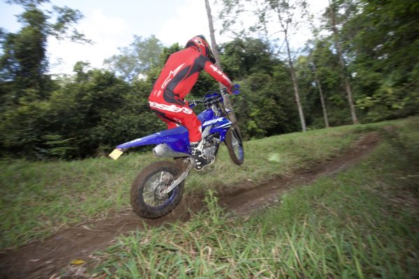 If there’s one area where Yamaha really flexes its muscles, it’s suspension. The KYB SSS fork up front and matching KYB shock in the rear offer 300mm and 306mm of travel respectively. This isn’t a soft setup that wallows around like a lazy possum. No, the WR likes to charge. For aggressive riders, it’s perfect. You can dive into ruts, hit G-outs and throw yourself off drops with confidence. The bike doesn’t flinch, it just asks for more.