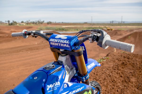 It’s really quite rare that I’ll hop on someone’s race bike and feel completely comfortable right from the get go. With Jed’s CDR Yamaha YZ450F I didn’t need to touch a thing right from the lever positioning to even how far Jed has his levers wound out to suit the length of his fingers. Everything just felt spot on but the biggest shock was just how comfortable I was with this extravagant handlebar setup. Not only did I forget about the bend once I’d ticked off the first lap, but I’d go as far as to say that the more the day ticked on the more comfortable I became with the setup.