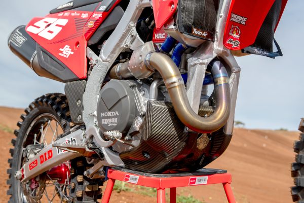 For me one of the most interesting parts of this test was the comparison from riding Webster’s 2022 model Factory Honda CRF450R, a bike that I just couldn’t gel with. I struggled to find comfort when I rode it a couple of years ago for ADB Magazine. The race motor on the 2022 bike really lacked the bottom end torque that I love from a 450 and the suspension was particularly firm in the first part of the stroke, giving me next to no small bump sensitivity.