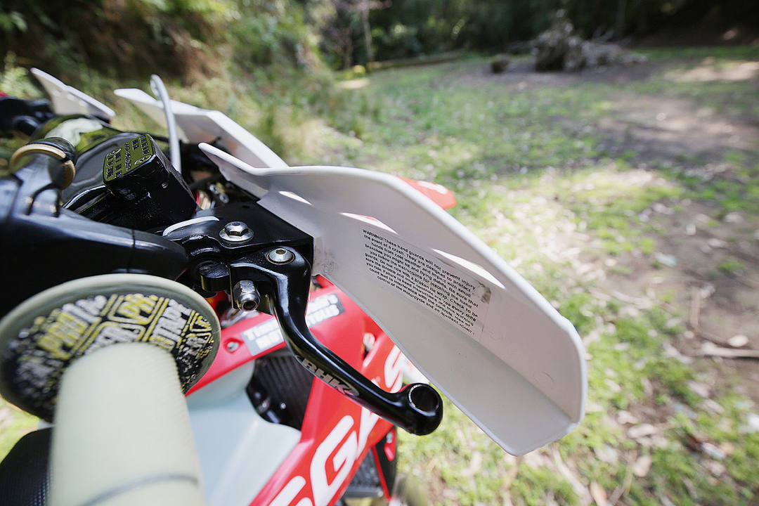 Other than the excessive force needed to move the pedal, nothing caught me out on the trail. A slow lap of the test loop soon had me keen to burn some fast ones. Finally, Mitch had come up with a really cool track that closely resembled some of the Special Tests you get at an AORC round. There were some nice, natural jumps to test all aspects of the Gas Gas and some great corners.
