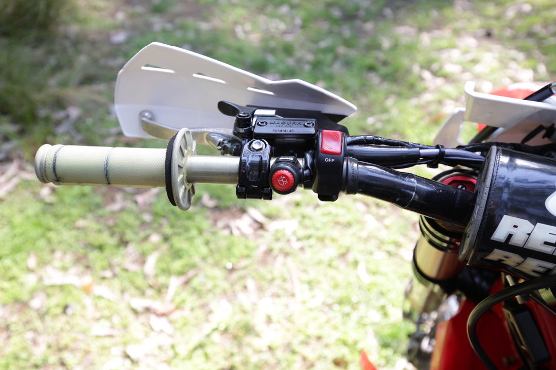 The next thing I noticed was an XRC steering damper but, other than that, Broc had only changed small things like the handlebar and ’grips, making it not that far from standard trim.