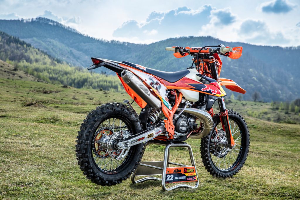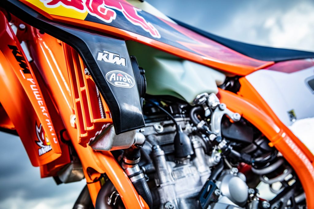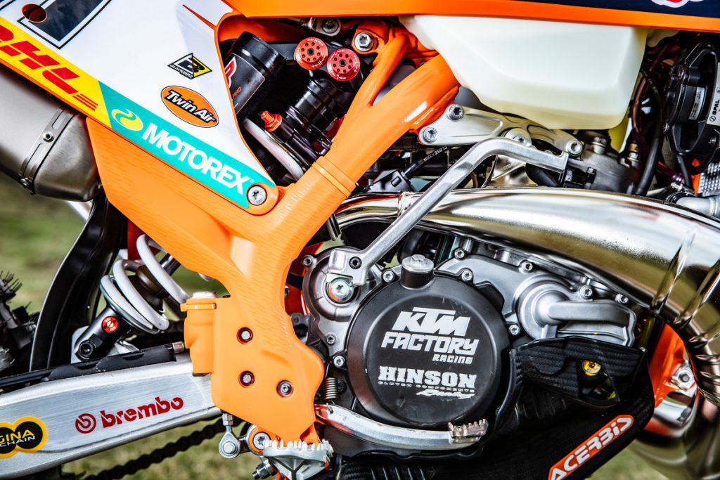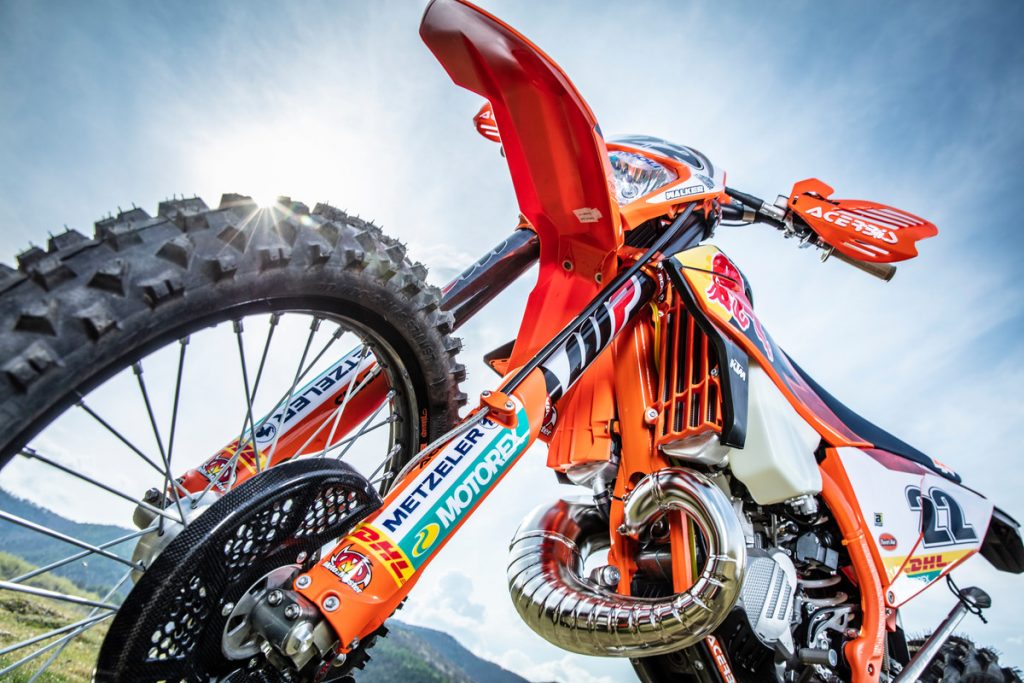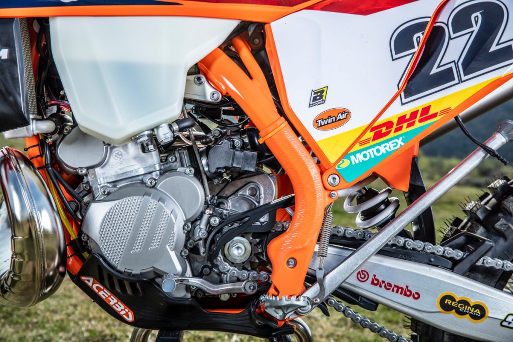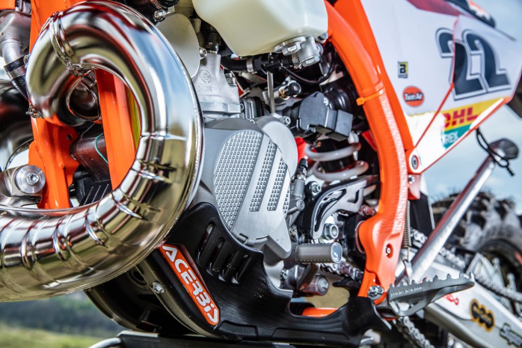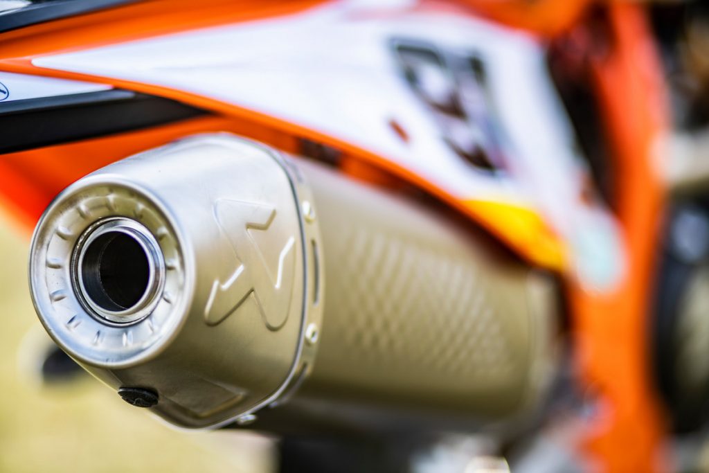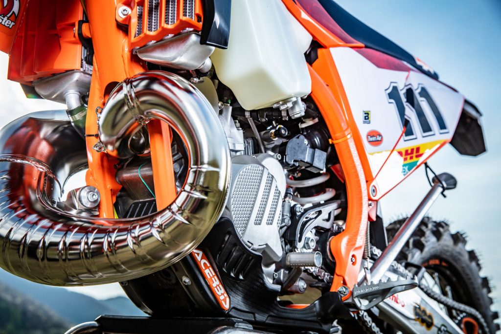The corrugated pipe comes standard on the 2020 XC two-strokes, unveiled last night, and could be a sign of things to come on the 2020 EXC range. We’ll have to wait and see.