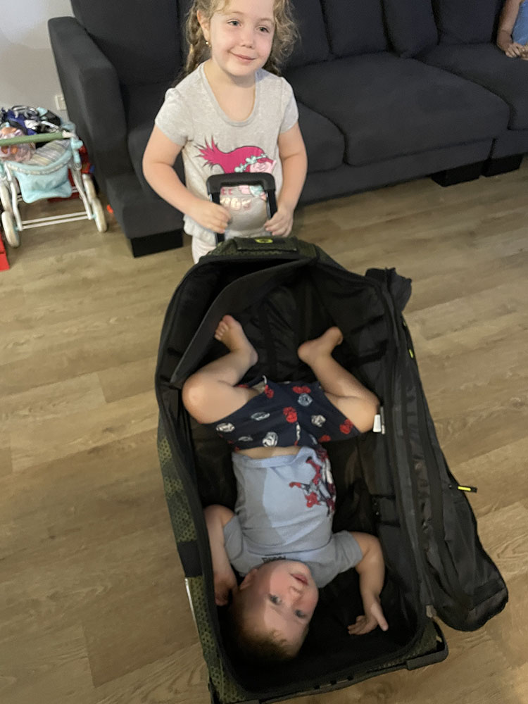 As soon as I brought my Ogio Rig 9800 home the kids tried to claim it and turn it into a sled. I turned my back for five minutes and they were towing each other around the house using the bag like a hand trolley! There was a tonne of kicking and screaming when I pried it away from them to fill it with my gear but I got it loaded and have had it bouncing around the back of my ute when I go riding. This bag is likely to end up as part of my estate for Ella and Reid but I’ll check back with you guys in the meantime for a full review and update.