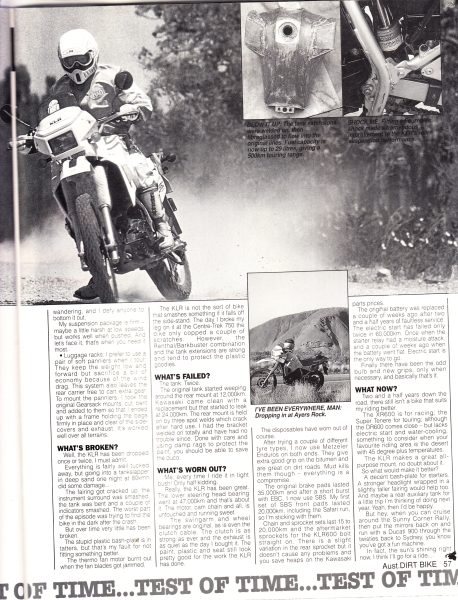 TK had nothing but praise for the KLR’s reliability, putting its impressive longevity down to regular maintenance – oil changes every 2500km, greased bearings, tappet checks every 5000km, a clean air filter and frequent chain oiling. As for faults, there were only a few: a flimsy plastic bashplate, a screen that was too low, and a handlebar that didn’t suit his riding position.