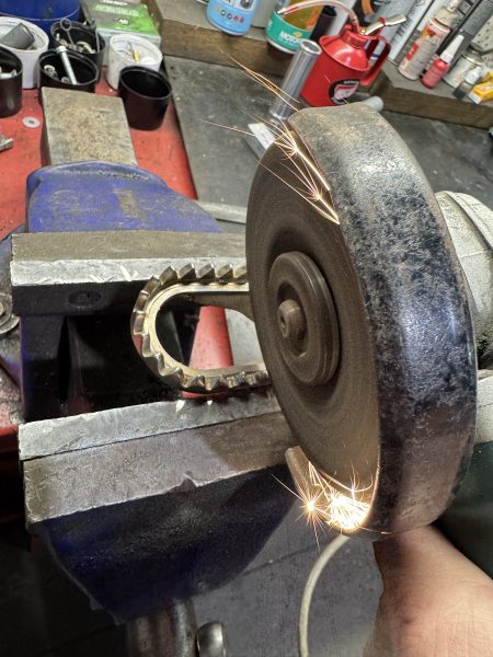 Rotate the peg in the vice so that you can now grind the flat side of the teeth on the opposite side. Continue until you have done each side of every tooth.