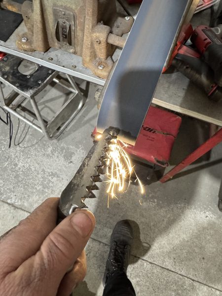 Once the teeth are all sharpened back to a point, take the pegs and dress up any sharp burrs that might be overhanging with a linisher.