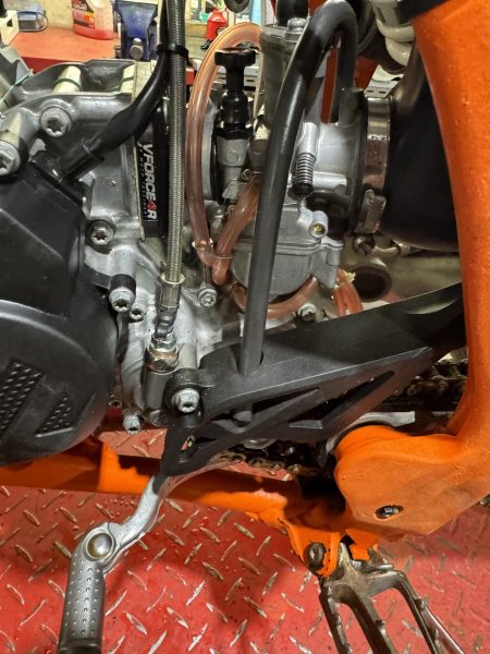When the fuel tank is removed from the motorcycle dirt has the potential to fall inside the fuel hose. The KTM two-stroke range comes with a small hole in top of the top of the chain guide to prevent this from happening.