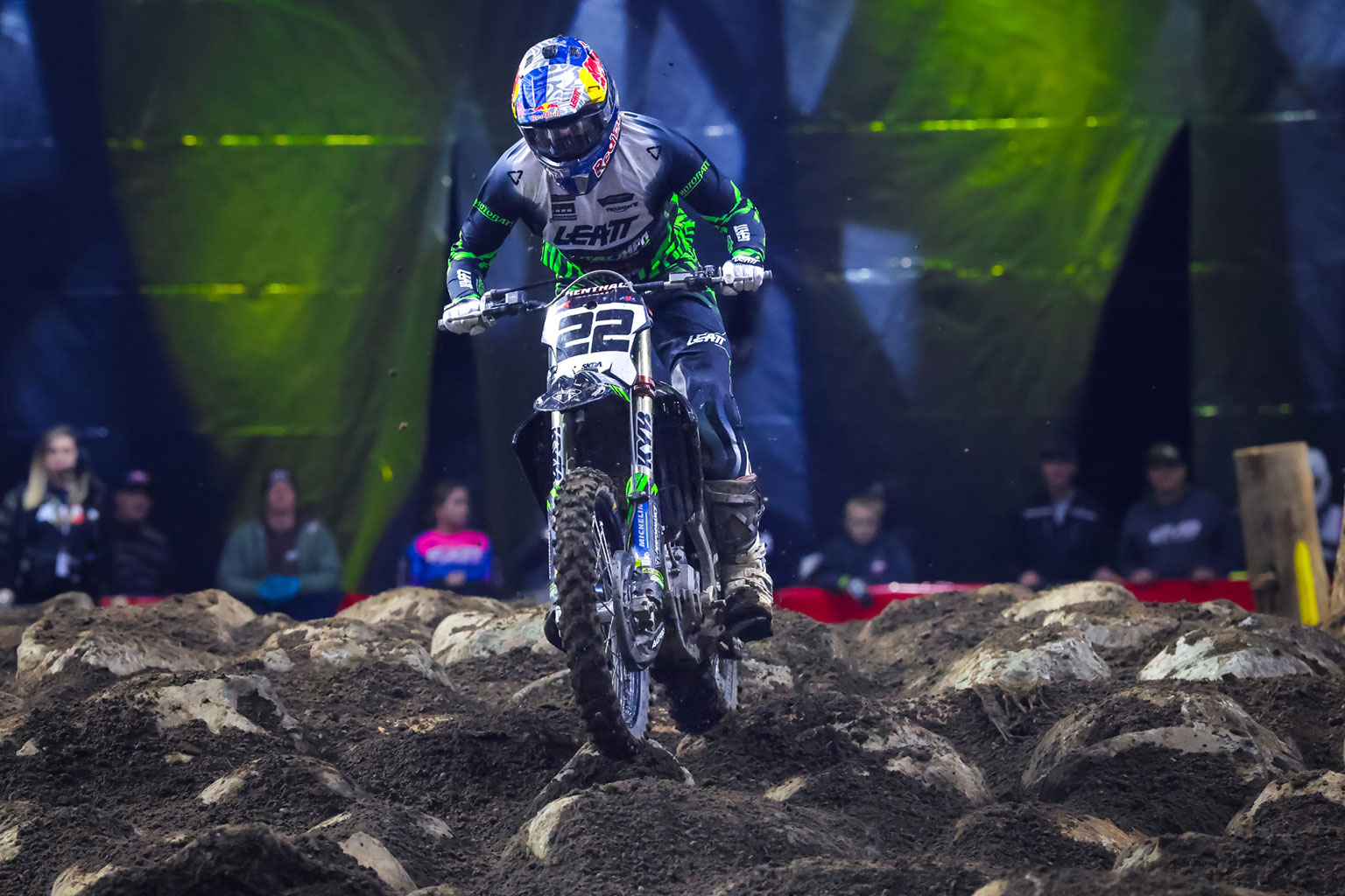 Round five in Reno saw Jonny return to his absolute best. Dominating the night with a clean sweep, he took victory in all three motos to reduce his gap to the series leader to just three points. It was a defining moment for the team and a clear demonstration of the bike’s capability in one of the world’s most demanding indoor off-road environments.