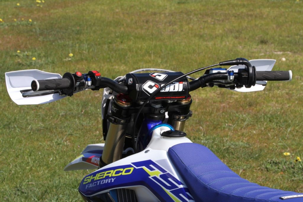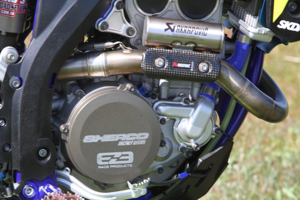 The first thing he noticed was the plush feel of a European enduro bike compared with the alloy-framed Japs he’s been riding for so long. He liked how well the Sherco turned and how the bike sat well in ruts, also he feels the bike doesn’t beat him up when racing the three-hour cross-country events with its power delivery.