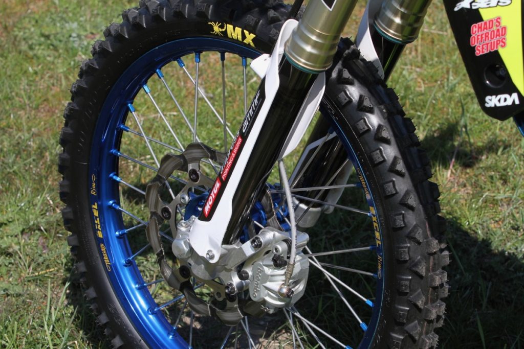 Jonte has been very clear with what he wants from his set-up, with no real strange requests. Chad’s Offroad Setups has got a fairly plush setting in both the fork and shock (both standard Sherco KYB ones). Jonte is running the Merge Racing light-to-medium progressive inner-chamber spring in his fork with SKF fork seals and all internals have been polished to reduce stiction, along with a slight re-valving. The fork tubes have been coated with DLC.