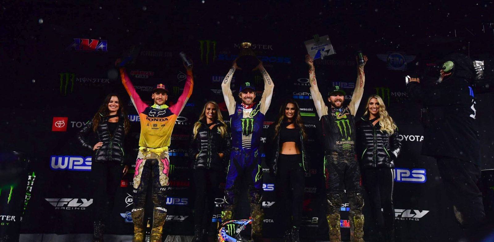 “I didn’t get the best start but made some good passes and got into the lead and won my heat race which was awesome, and it felt really good to get that first one out of the way at the first race. The main event it was really pouring down. It was looking tricky watching the 250 start so I definitely got a little excited and nervous and all those feelings you get at the first race. I got off to a pretty decent start and worked my way up to third by a little over half the race. I played it smart and tried to make no mistakes. One of the guys went down in front of me and then I was able to charge harder and catch the leader, make the pass and ride a smooth race to the win. For me this is incredible, I haven’t won a 450 race in over six years so it’s a pretty awesome feeling. I couldn’t be much happier, I’m really excited to go to Phoenix. I just want to stay, smart, smooth, fast, consistent and focus on the championship plate.”