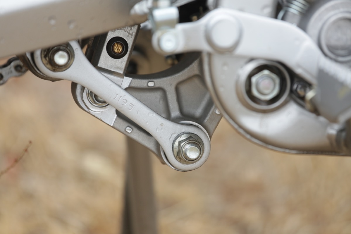 It has the same grips as used on the MX racers, making them high-quality and easy to hold. The 33mm conventional fork is not adjustable but the piggyback shock has adjustable preload, four-way adjustable compression damping and 22-way rebound damping adjustment.