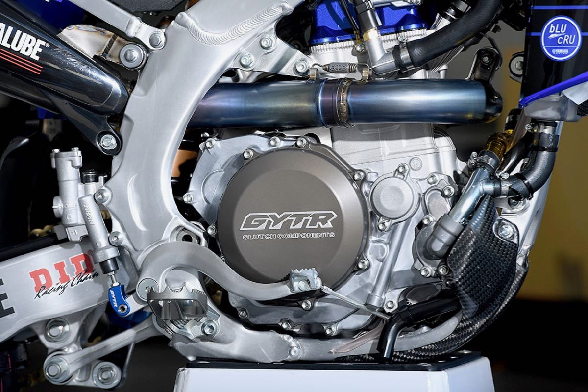 The GYTR engine package – head, cams and piston – are exactly the style of power Kirk likes in his bikes. There is an increase in power but, just as importantly, it keeps the same delivery as a standard engine. With the GYTR package, the power is broadened right across the rev range, which allows Kirk to run that higher gear and pull that low rpm.