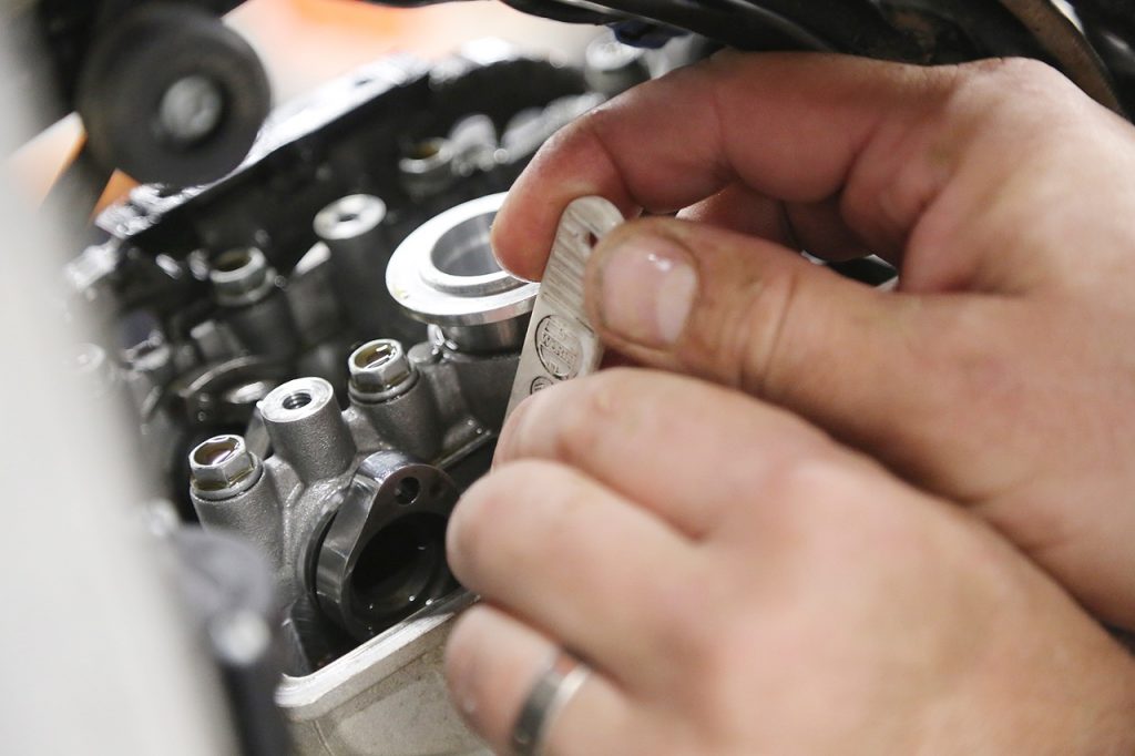 The first thing to inspect was the top-end. Mick ripped it off in seconds and had his feeler gauge poking around to see if the valves had moved. They hadn’t budged! They were within the .10-.15mm clearance that the factory recommends so they did not need adjusting. We tossed up the idea of replacing the piston but as the valves were in perfect order and it was still 20-30 hours short of piston replacement time, we decided to leave it. Mick suggested regular air filter cleaning and replacement, a Boydy fixation, was the reason for the perfect valves. Obviously fresh oil also helps but ensuring no dirt gets past the air filter is the key to ensuring the valves seat perfectly and do not wear.