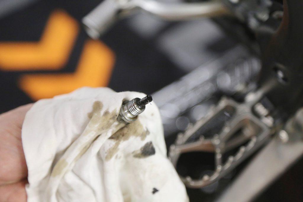 Next we ripped the sparkplug out and while a little brown it was still in great condition. If the colour of the plug was slightly greyer Mick said he would have been a little concerned. But the way it was, he was very impressed. Clean fuel and fuel filters will ensure a better spark and Mick said I passed this with flying colours.