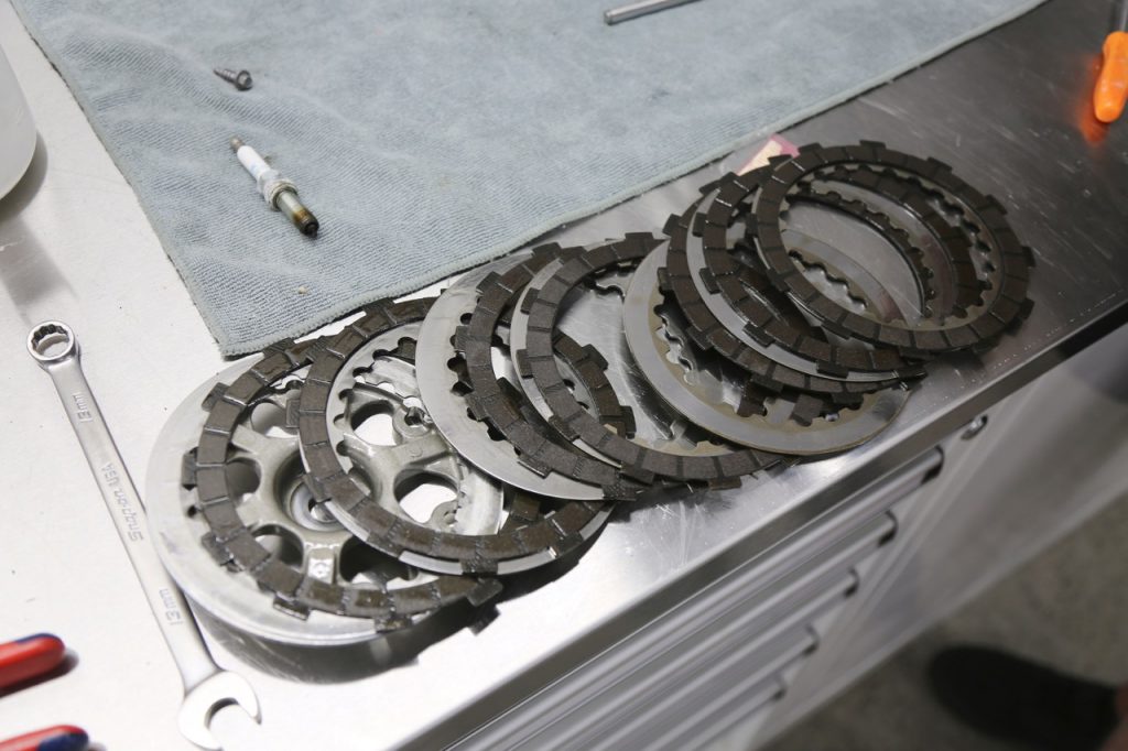 Finally, we pulled the clutch out. I expected the plates to be significantly worn as most the riding I do is in snotty, technical terrain. But, to my surprise, it didn’t need replacing. Mick looked across at me and said: “Gee mate, you must be good with your clutch control!” I blushed.