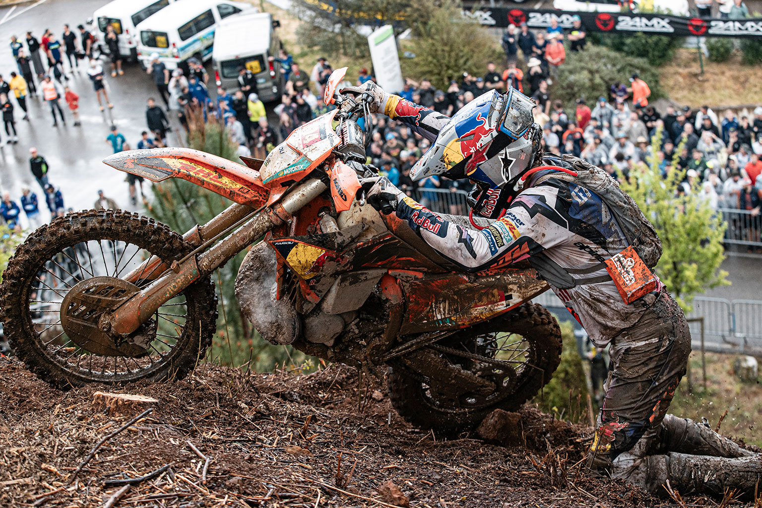 In the Alestrem main event, Lettenbichler immediately established himself at the front of the field, moving into second place on lap one before taking control of the race on lap two. Settling into a strong rhythm, the German looked in command at the head of the field as he built a gap at the front. However, with conditions deteriorating rapidly following torrential rain, the race was shortened by one lap. Despite the challenging and unpredictable terrain in the closing stages, Mani managed the situation effectively to bring his KTM 300 EXC home in first place, securing a hard-fought opening victory of the season.