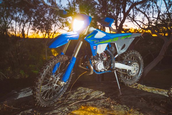 When the Sherco was thrown straight into the deep end at the Transmoto 8-Hour at Young, it only confirmed how versatile the platform is. With a fresh Dunlop soft-terrain tyre bolted on, it ripped through perfect, rain-soaked grass tracks and flowed through tight tree sections without missing a beat. Second gear in the tight stuff, fourth gear pinned across the open sections, the Sherco never felt out of its depth.