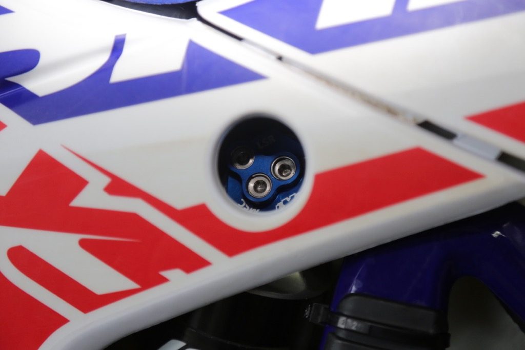 As you can see, I also have some custom numbers on there which were taken care of by long-time supporters Holeshot Graphics and they did a great job in keeping the red, blue and white theme in sync. I fitted my preferred set of hoops, the trusty Pirelli Mid/Soft tyres as well and that made a big difference over the stock Michelin FIM tyres.
