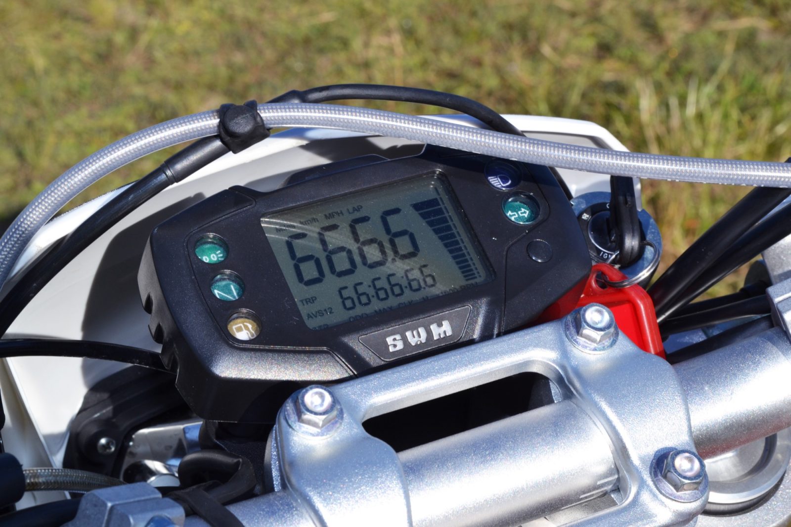 Finally, the SWM’s digital dash is a good ’un, with a gaggle of functions you can switch through, including speedo, tacho, trip meters, average speed, clock and more, on the unit tucked in behind the headlight shroud.