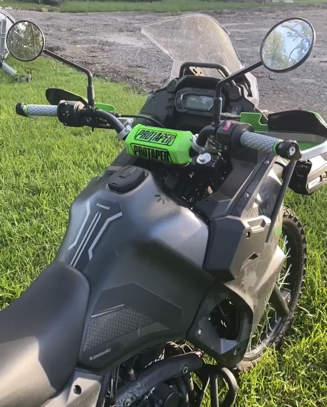 This month we have some goodies for the for the KLR650. Our mates at Serco and Barkbusters sent us a ProTaper Evo Adventure handlebar, Clamp On Pillow Top handgrips and Barkbuster VPS handguards with tapered-bar mounts and bar weights. The Pillow Top ’grips are comfortable and plenty grippy.