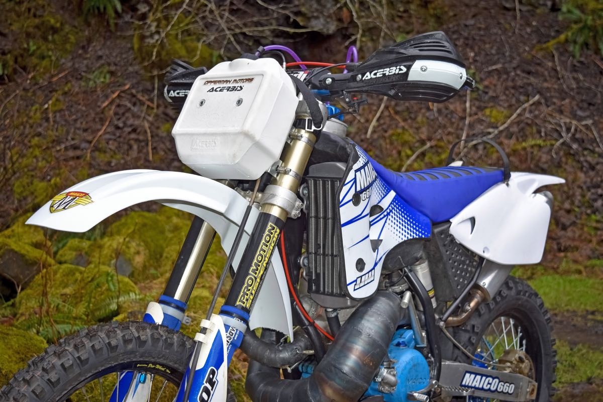 I would recommend a Maico for sure, but finding a Maico 660 is going to be tough since there pretty much aren’t any around. You could buy a modern Maico 700 or 620 which have hydraulic clutches as opposed to the cable clutch of the old 660. I definitely recommend a “Clake One Light Clutch” on any of these beasts because the clutch pull is 25 pounds without it versus four with one. Toby Opferman