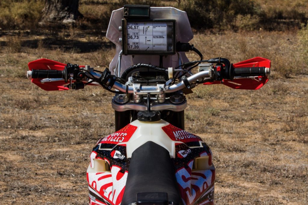 The handling department is always interesting on an enduro bike that has been converted to rally racing. With so much added weight from the long-range fuel tank and the navigation gear you just never know how it’s going to react.