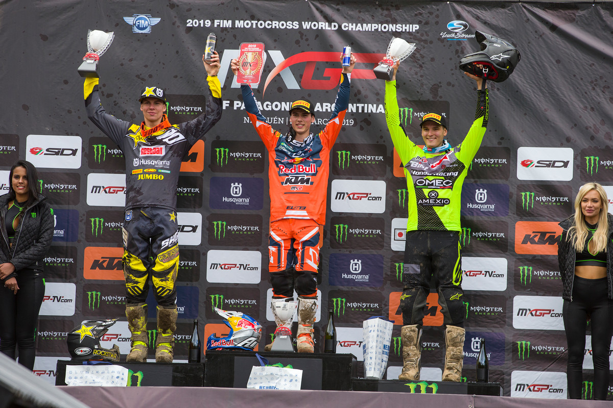 Then in race two it went even better as he crossed for the first lap in second place. He held this position for four laps before dropping one spot but was still able to receive the chequered flag in third place, which gave him the winning second moto tie-breaker after tying with both Calvin Vlaanderen and Henry Jacobi on 36 points. He was joined on the podium by overall winner Red Bull Factory KTM’s Jorge Prado and second place finisher Husqvarna’s Thomas Kjer Olsen.