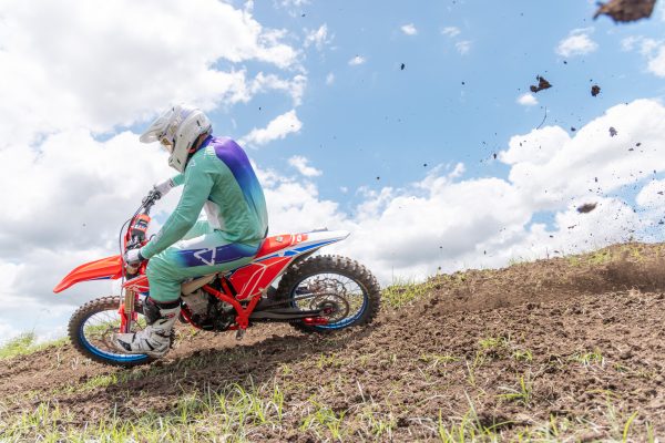 I couldn’t help myself, I had to find out how aggressive we could make the Beta 350. We went one turn in on the power-valve adjuster and fitted a 50-tooth rear sprocket in place of the standard 47-tooth. This made the 350 drastically more aggressive. The power was instant, right from the first crack of throttle. The bike launched out of corners and delivered an immediate hit that meant you had to be ready for it and hanging on.