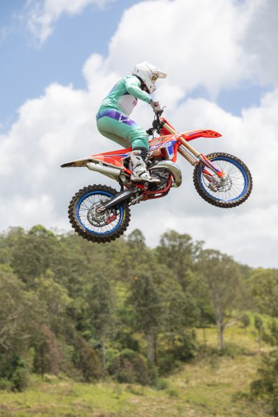 The original plan was to test at QMP, but after more than 100mm of rain in a short period the track was unrideable. A last-minute venue change sent us down to Lismore, to a private track sitting under blue skies and surrounded by bright green hills. The track had been ripped and soaked with just the right amount of rain, forming up better than God could’ve intended for himself. It was one of those rare days when everything aligns, the kind of test conditions we riders dream about.