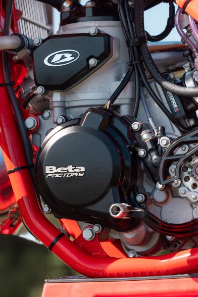 What prompted this is anyone’s guess; after all, there isn’t a racing class for a two-stroke of this capacity. This bike exists purely because Beta wanted to build something that’s fun to ride, something that leaves you smiling from ear to ear. My first thought was, this thing is going to be an absolute animal, but Beta assured us they’d built a big-bore two-stroke with a four-stroke feel.