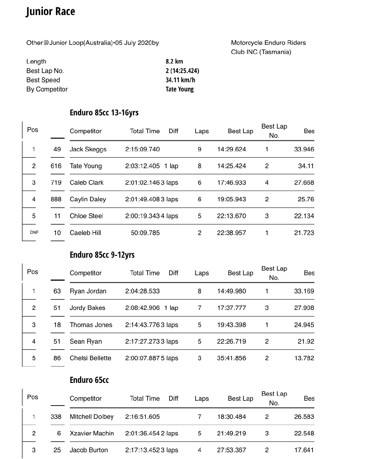 Watch the Junior 65 and 85cc highlights from the second round of the Motorcycle Enduro Riders Club of Tasmania enduro series, which was a two-hour endurance event.