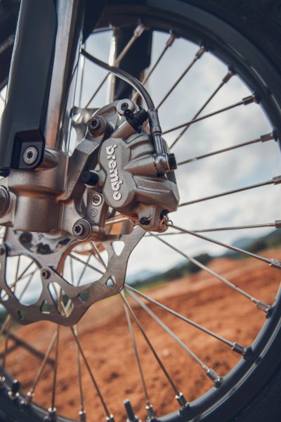 Braking is handled by Brembo calipers paired with Galfer discs. Lightweight D.I.D DirtStar 7000-series aluminium rims are fitted with Pirelli MX32 mid-soft tyres.