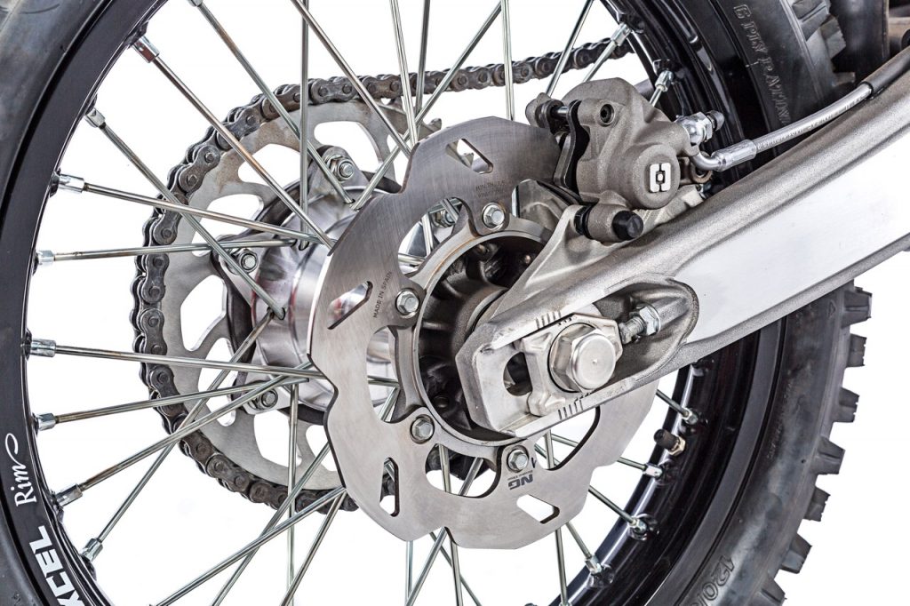 For control, absorption and traction, the ECRanger provides great feedback transmitted by its 28.6 mm handlebar with central brace, the signature Regina -520/135 non-seal chain- and new tires: Vee Rubber -90 / 90-21 front and 120 / 90-18 rear. The tires are mounted on Excel rims providing extraordinary grip that will surprise even the most experienced enduro riders.