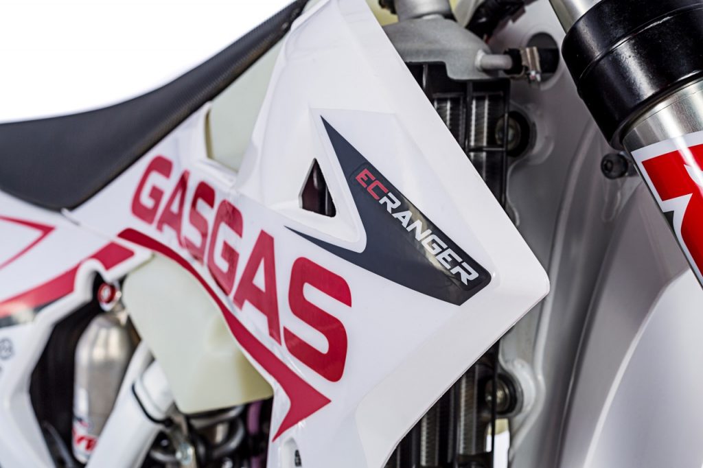 With the aesthetics, the new ECRanger premieres a very different graphic design from the rest of the Gas Gas enduro range. A new and attractive image giving greater prominence to the white colour, present both in the frame and in the panels of this new Gas Gas, a go-anywhere bike that takes up where the historic Pampera left off to adapt to the demands of today’s rider.