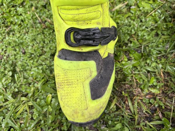 Protection – The outer shell material, a full thermoplastic polyurethane (TPU) shin plate and calf protector are moulded in – this not only keeps the weight down but it also does a good job at protecting my shins and calves. There’s solid structure throughout thanks to the integrated steel shank running through the sole – perfect for added support when landing jumps or slogging through rocky terrain.