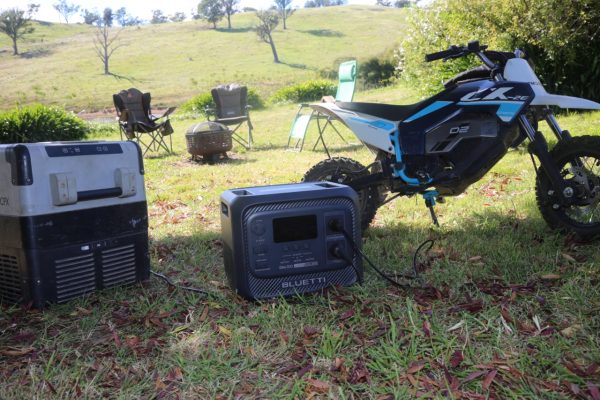 We gave it a proper test over the Easter long weekend, running a fridge from Thursday night through to Monday/Tuesday before it dipped below 10%. That’s nearly five days keeping the beers cold and phones charged, which is pretty impressive. From there, we stepped it up and plugged in a kid’s electric dirt bike. Charging a CFMOTO CX-2E from empty to full battery and it used roughly 32% of the Bluetti’s capacity, and that was while still running the fridge all day.