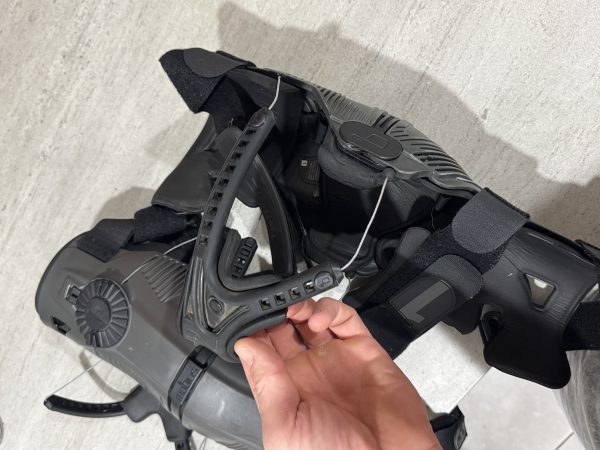 I’ve always found after a moto or two that braces tend to settle in and stretch a little, needing retightening, but with the Mobius brace you can retension it by twisting the large dial through your pants instead of dacksing yourself in the pits to tighten the straps.