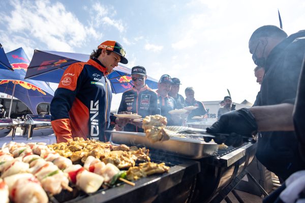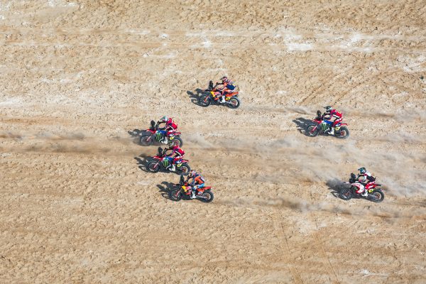 We didn’t want to go into the sand without supplies. I was like all the hobby riders are going to be rolling up at eight, seven, nine o’clock at night. They were going to cancel stages, give time back and all this stuff and it was getting too complicated, so they decided, that’s not right. Everyone stops there, and then Adrian and Luciano said, “Let’s just let the RallyGP guys, go because there’s only 10, 15 of us”. But that wouldn’t work either.