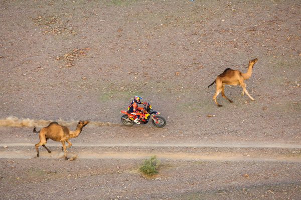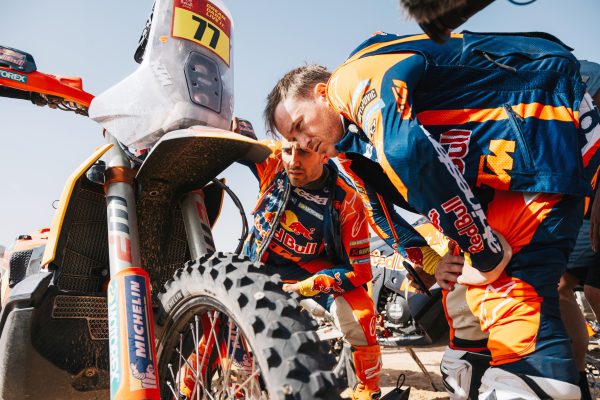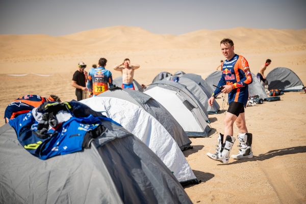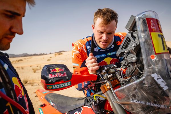 The first week became a high-speed chess match. Sand, rocks, dunes, bonus seconds, penalties, the margins were brutal. Sanders rode some of his best 2026 Dakar stages through the deep sand, opening routes, managing tyres, and still finding speed where others bled time. Even when a speeding penalty clipped his buffer, he stayed calm, recalculated, and kept himself in the hunt. At the rest day, he was still very much in the title fight, even if he admitted the rally hadn’t been as clean as he wanted.