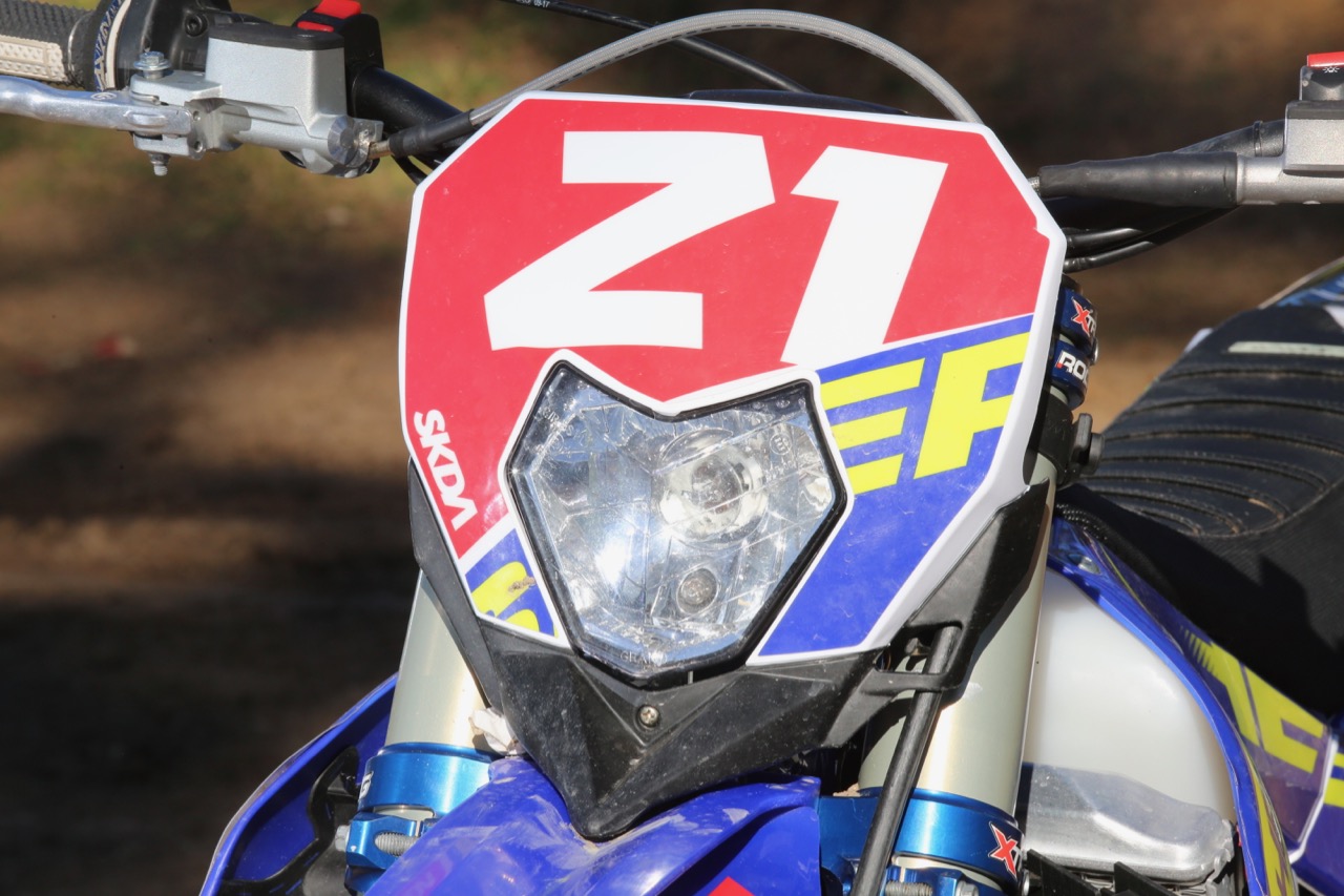 Justin Carafa’s Sherco 125SE-R had the following parts fitted, Grabbo removed some of them for enduro work:
