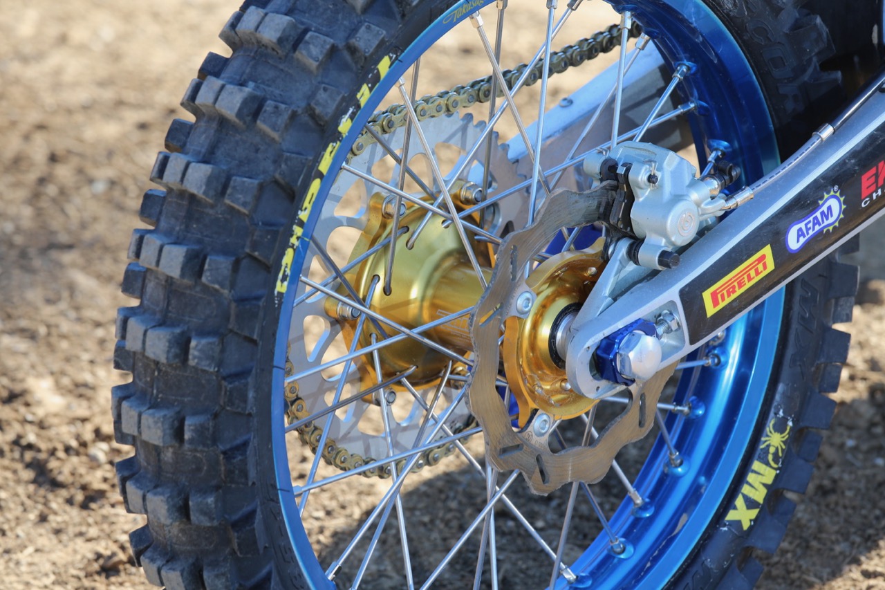• Pirelli MX32 tyres, 19-inch rear for motocross and 18-inch for AORC